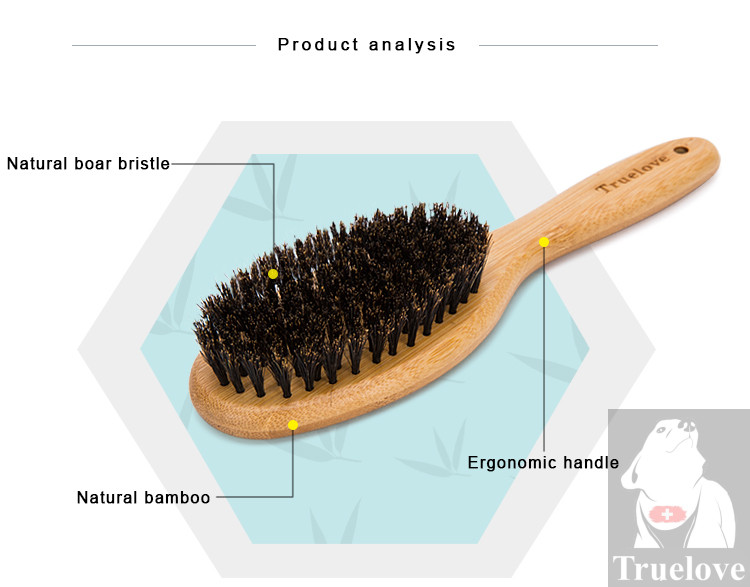 La brosse Truelove est une brosse pour chien faite avec du bambou écologique et une bordure en acier inoxydable. Elle est conçue pour enlever délicatement les poils morts et les cheveux de votre chien, laissant son pelage doux et brillant. Les extrémités arrondies de la brosse en forme de broche la rendent confortable à utiliser et augmentent la circulation sanguine de votre animal de compagnie. Cette brosse est parfaite pour les chiens ayant un pelage de longueur moyenne à longue. Les matériaux doux en bambou la rendent agréable à utiliser, confortable à tenir et anti-dérapante, ce qui en fait une excellente option pour prendre soin de votre chien tout en respectant l’environnement.